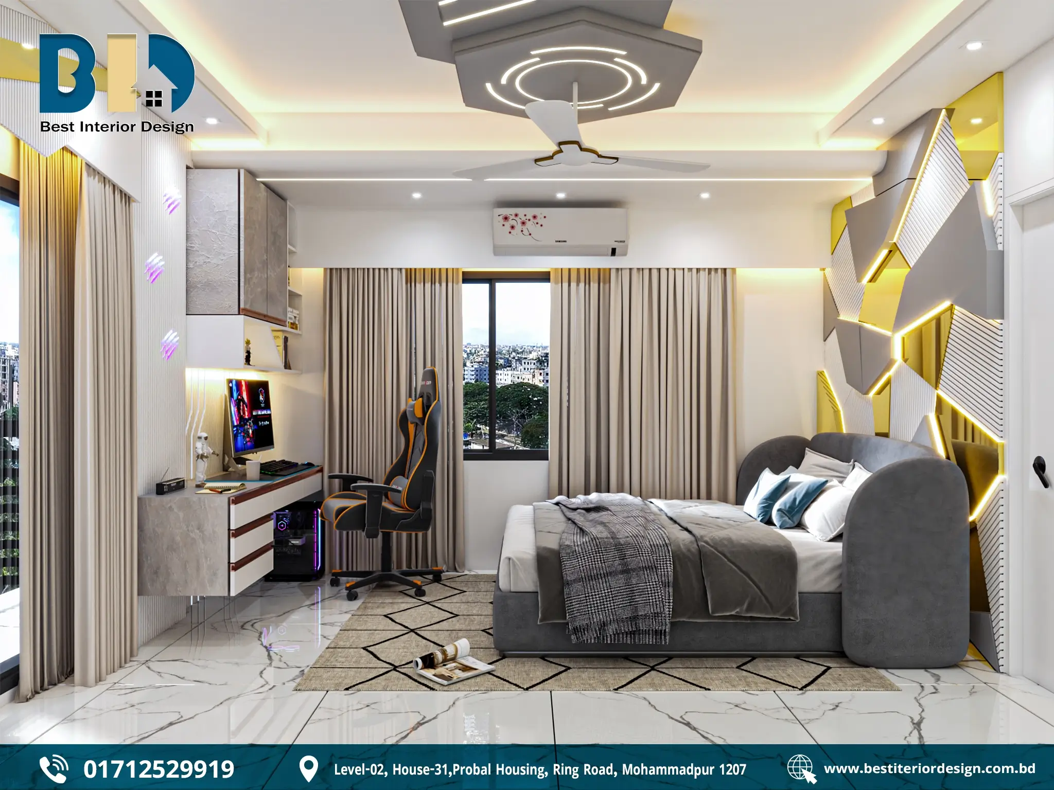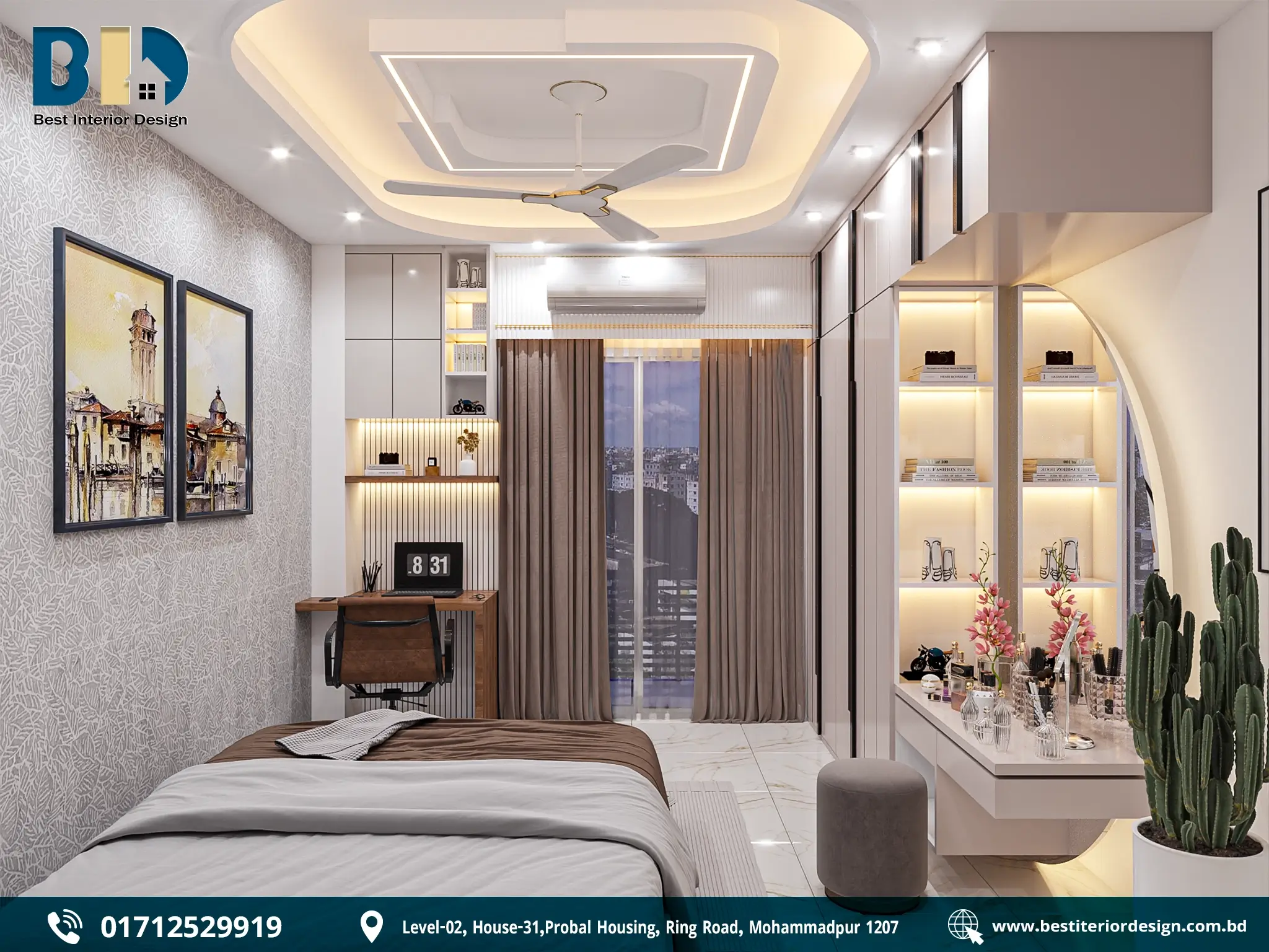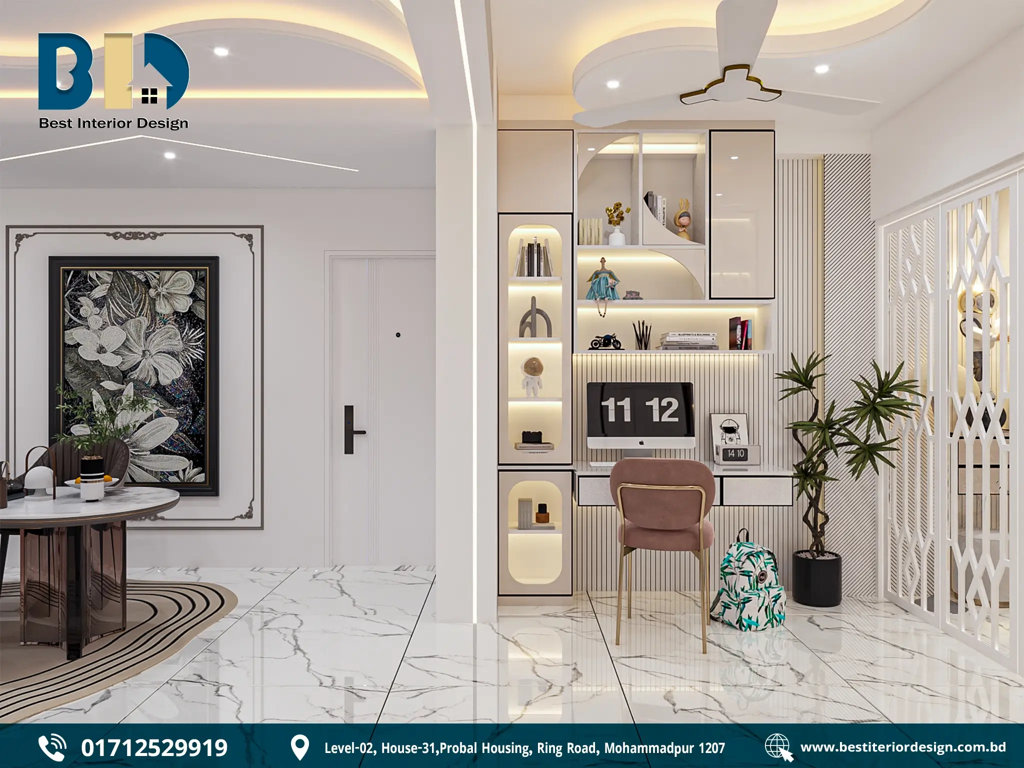 Urban apartments in cities like Dhaka often face space constraints. Innovative design solutions such as foldable desks, wall-mounted shelves, and loft beds are used to create efficient study units in compact spaces. These designs prioritize functionality while maintaining a stylish and modern look.
